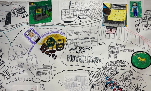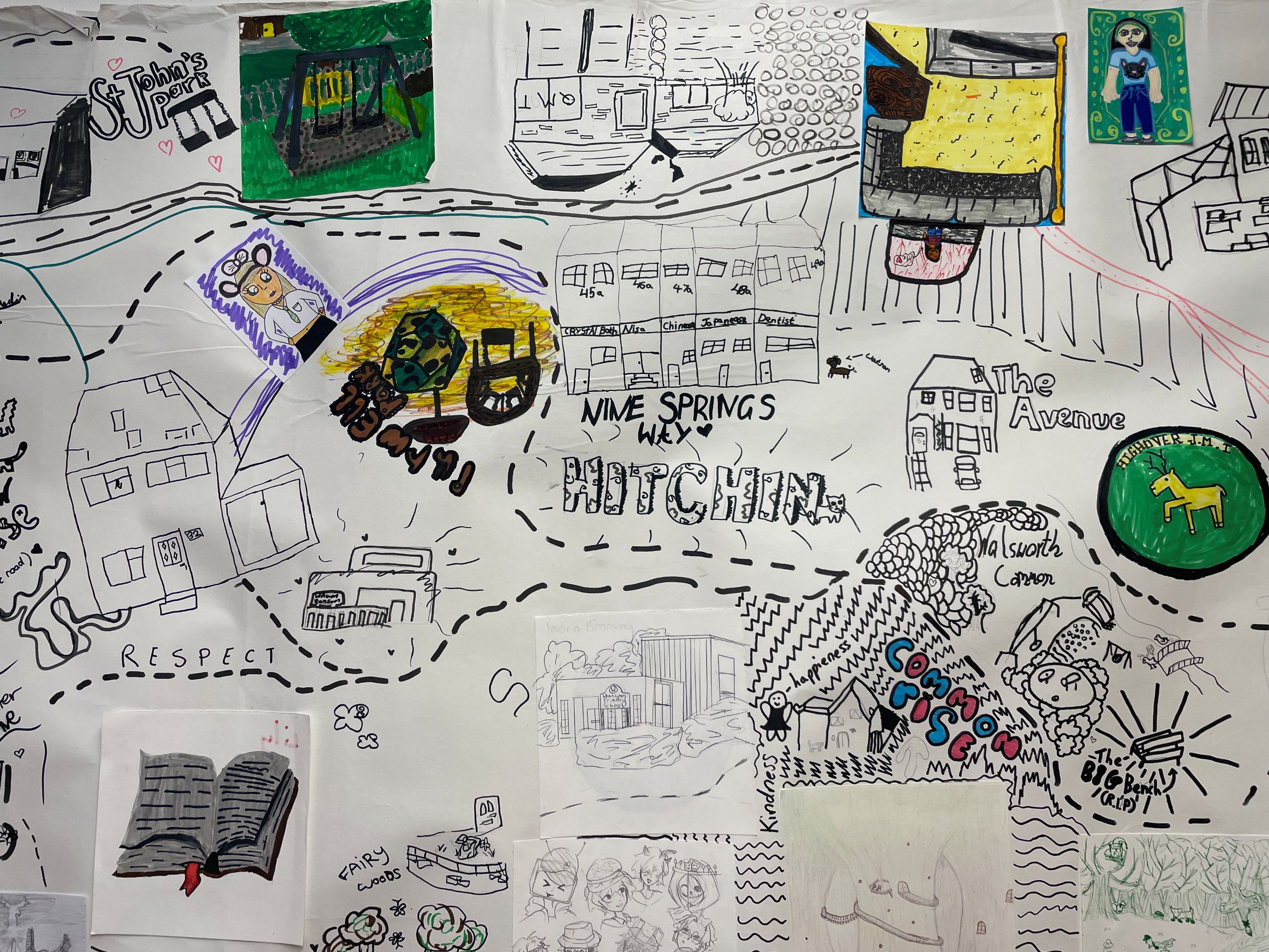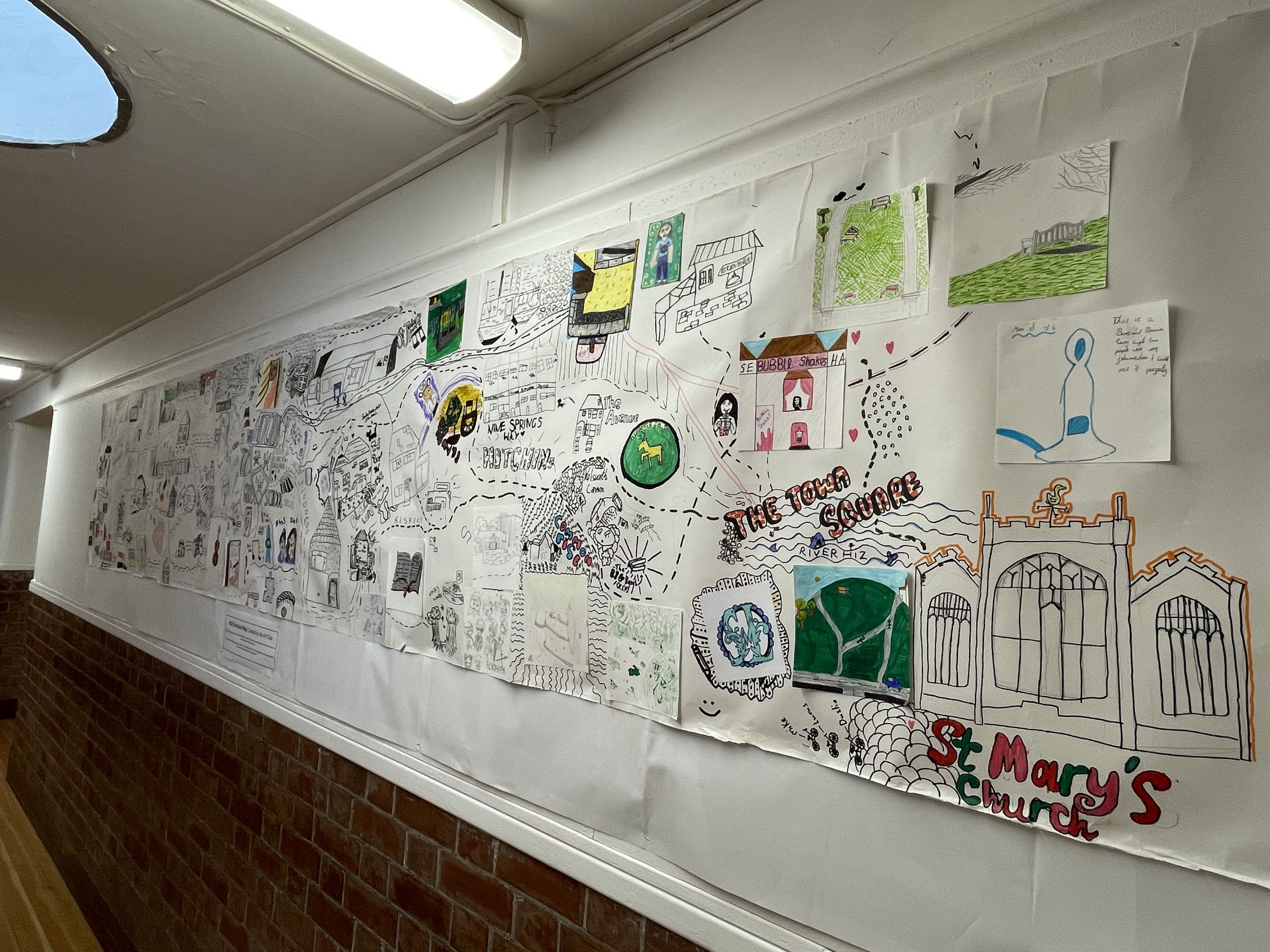 They built up the map in layers, adding local landmarks, key people and values. Finally our students added their own unique symbols to mark the specific spots that tell their individual stories. At 4.3m long, this is their ode to our special town that's both collaborative and personal.