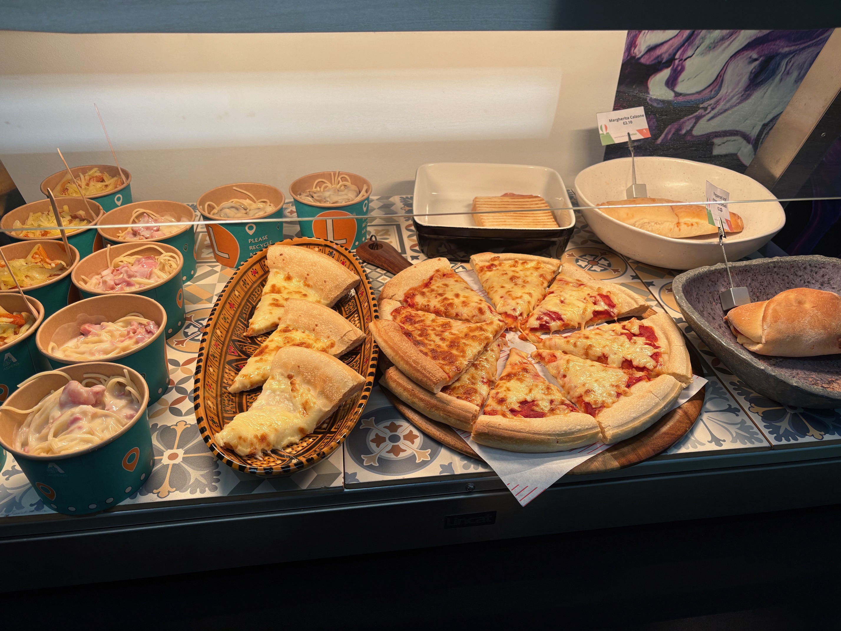 Italian Day in our Dining Room this week featured pulled ham carbonara or garlic mushroom carbonara with spaghetti, plus various pizza, calzone and stromboli to choose from.