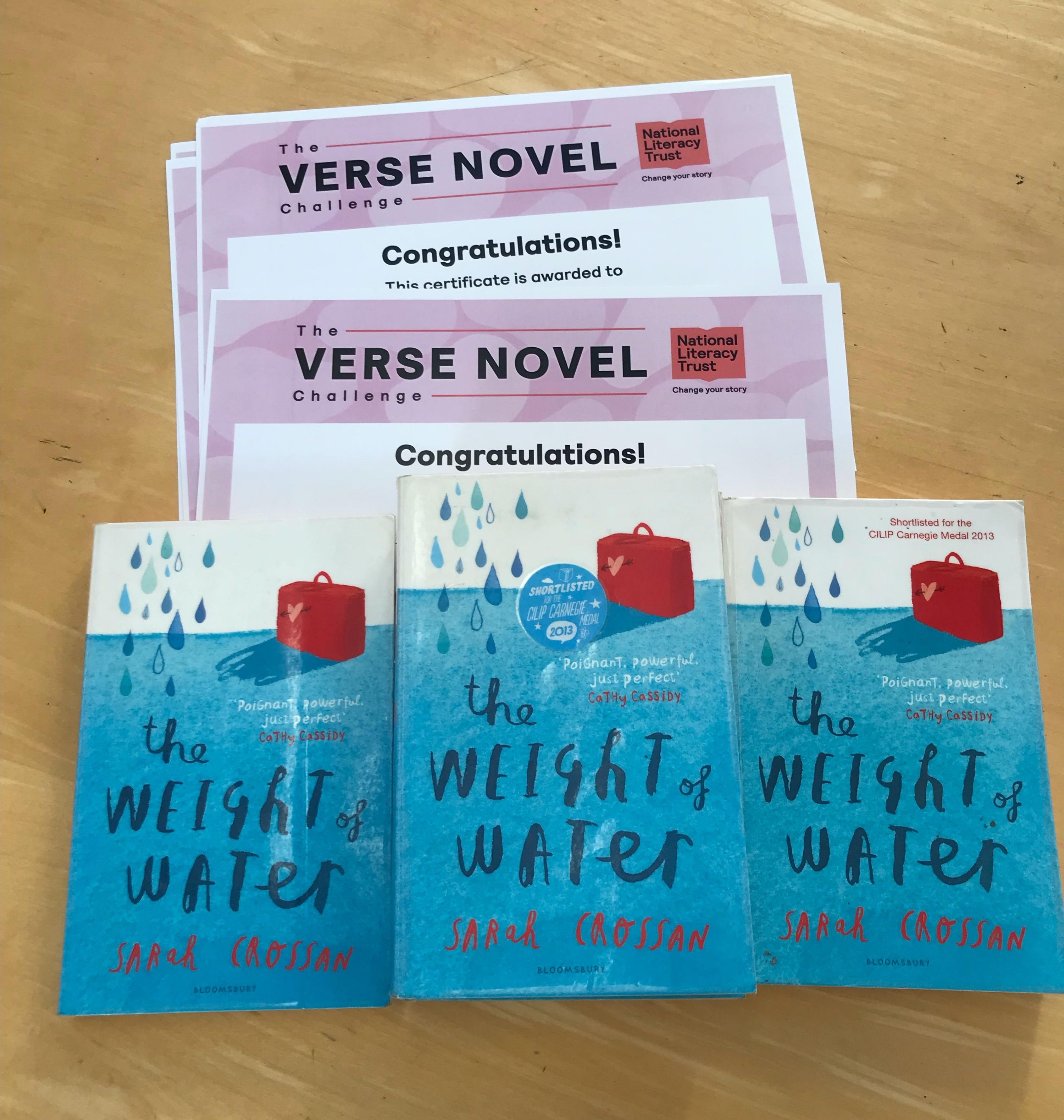 Four of our Year 8s, Orly B, Olivia P, Elyn F and Lily L, have taken part in the National Literacy Trust challenge, which was to choose a section of a verse novel to perform and record. They have entered their recording in the competition and will find out how they did in January. They chose an extract from page 100 of The Weight of Water, as it highlights themes of identity, migration and family.