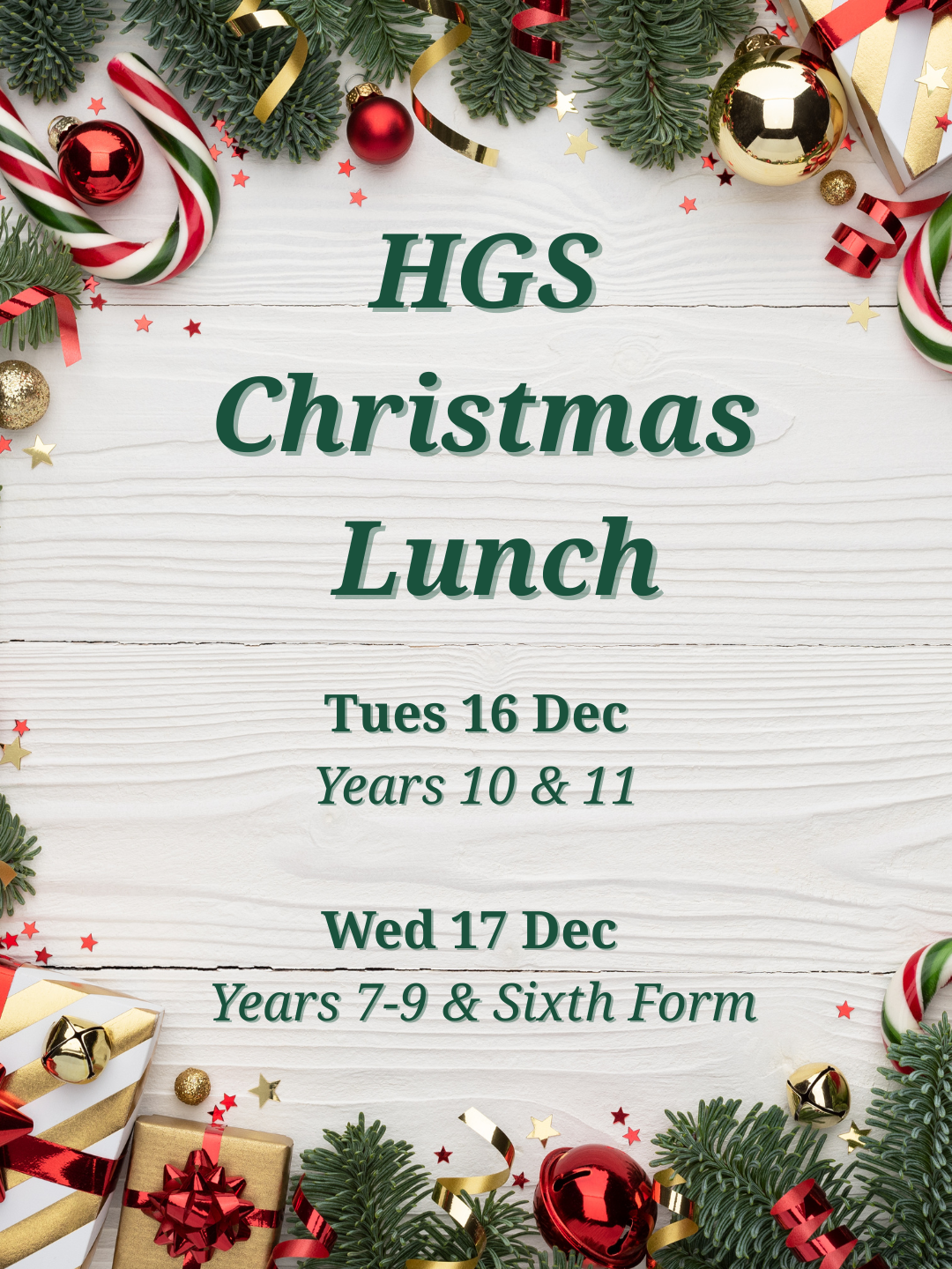 The Christmas Lunch will be the only hot food option available at lunchtime on the 16th and 17th December. Hot food will be on sale at break as usual, and cold options/pasta pots will be on sale at lunchtime. A separate location to eat will be made available for those having a cold/pasta option or a packed lunch.