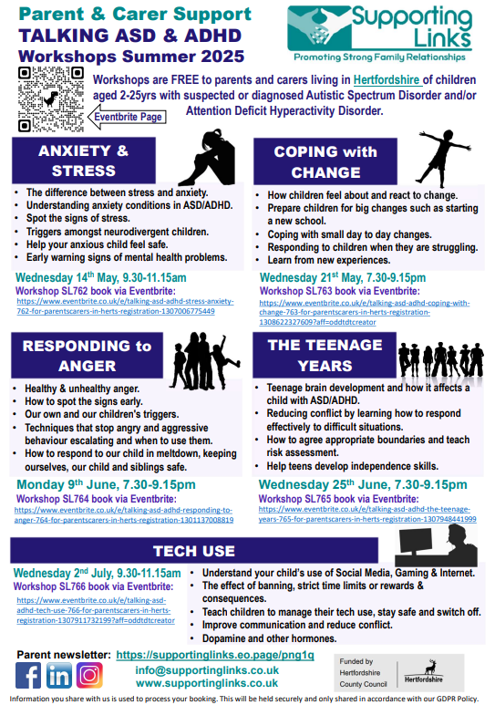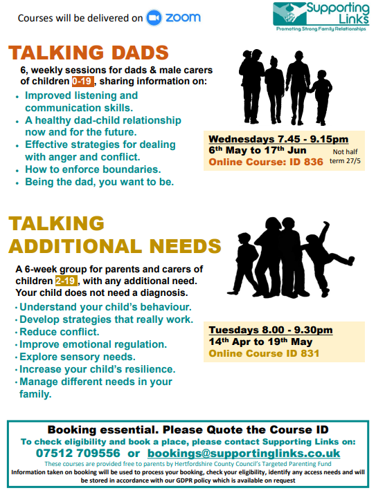 A partnership of local agencies, DSPL publishes a weekly round-up of courses, workshops and events related to young people's wellbeing and additional needs in the North Herts area.