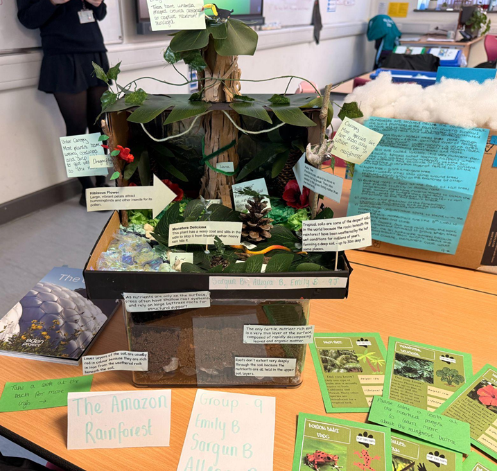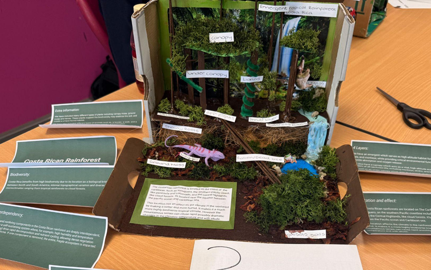 Our Year 9 students have recently swapped their traditional notebooks for cardboard boxes and craft supplies as they embarked on our Biome in a Box project. This hands-on challenge invited students to work in small teams to build creative, three-dimensional models of a tropical rainforest ecosystem.